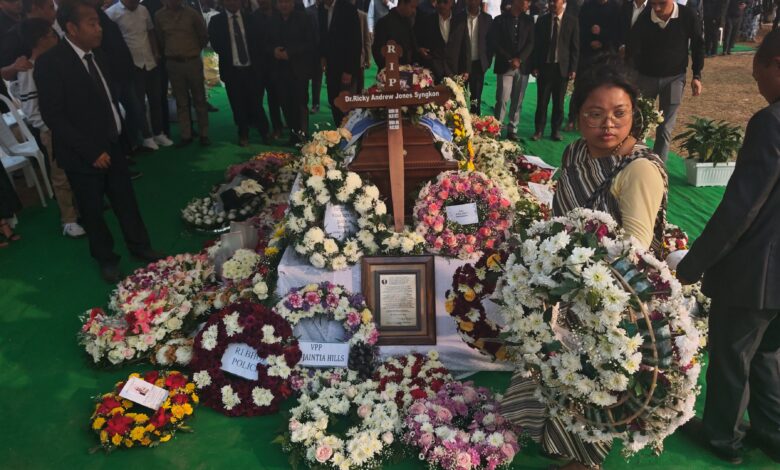 Nongsder, Feb 22: The funeral service of Shillong MP Ricky Syngkon was held at the ICAR residential complex ground, Nongsder, Ri Bhoi, on Saturday afternoon.