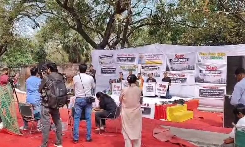 Shillong, March 21: The Garo Hills pressure groups have protested in Delhi on Sunday demanding action against illegal immigrants, following violence over polls in Garo Hills Autonomous District Council(GHADC).