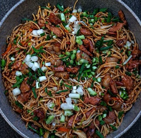 For the first recipe in this column, Heather is keeping it honest. No elaborate techniques, no long ingredient list. Just a bowl of wok-tossed noodles cooked in pork drippings, finished with oyster sauce, and topped with caramelised pork and spring onions.