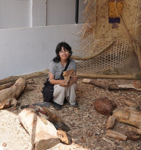 Lamgu’s work reflected a more contemporary theme. One piece featured a wooden figure, crafted from various woods, symbolising the complexity of identity. The figure’s body is a woman, open and vulnerable, while its masculine face conveys a sense of intensity, mirroring the struggle to navigate societal expectations and personal fears.