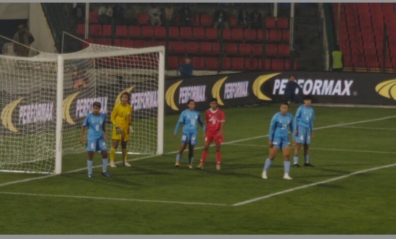 Shillong, Oc 27: Nepal women’s football team scored a goal against India at the Tri-Nation International Friendly match on Monday (October 27), at the Jawaharlal Nehru Stadium in Shillong. The match is streamed live for free on plus.fifa.com.