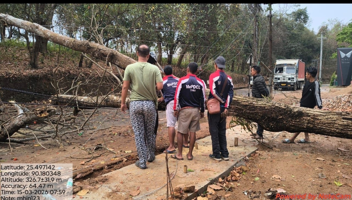 Shillong, March 15: Rain and wind snapped power lines in parts of the state.