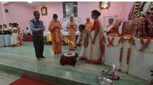 Earlier, the programme started with the lighting of ceremonial lights and Vedic chanting, followed by a welcome speech by the president, Uma Purkayastha.