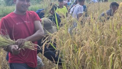 HFU volunteers lead farmers to harvest paddy at Lapangap