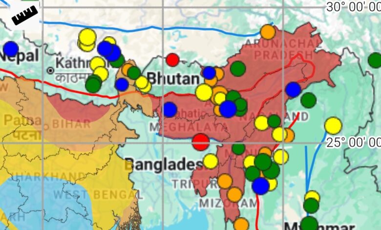 The epicenter was in Bangladesh ( 10 km depth) with a latitude of 25.04 north and a longitude: 91.57 east.